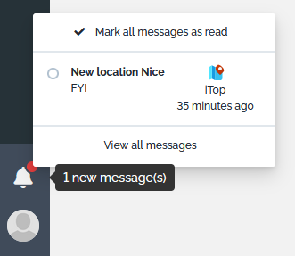 Mouse moving over the bell, displays a tooltip with the number of “unread” News in the newsroom (or “99” if there are more than 99 unread messages).