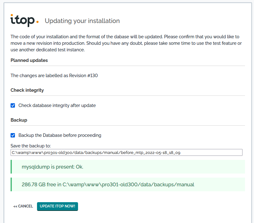 Once all the errors have been fixed, you can apply the modifications to iTop by using the second tab of the toolkit: