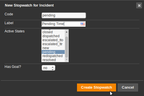 Active States The list of states in which the stopwatch is “active” (i.e. accumulates the elapsed time). Use CTRL+click to perform a multiple selection