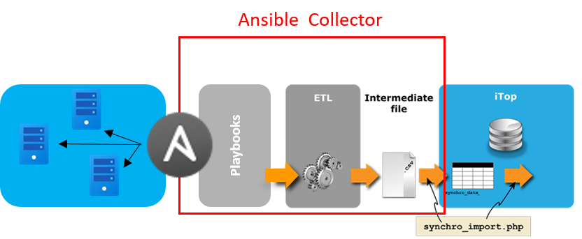 The Data collector for Ansible is a stand-alone PHP software that extracts from Ansible so called “facts”, gathered by the application, informations related to an inventory of CIs and synchronizes them with iTop's CMDB.